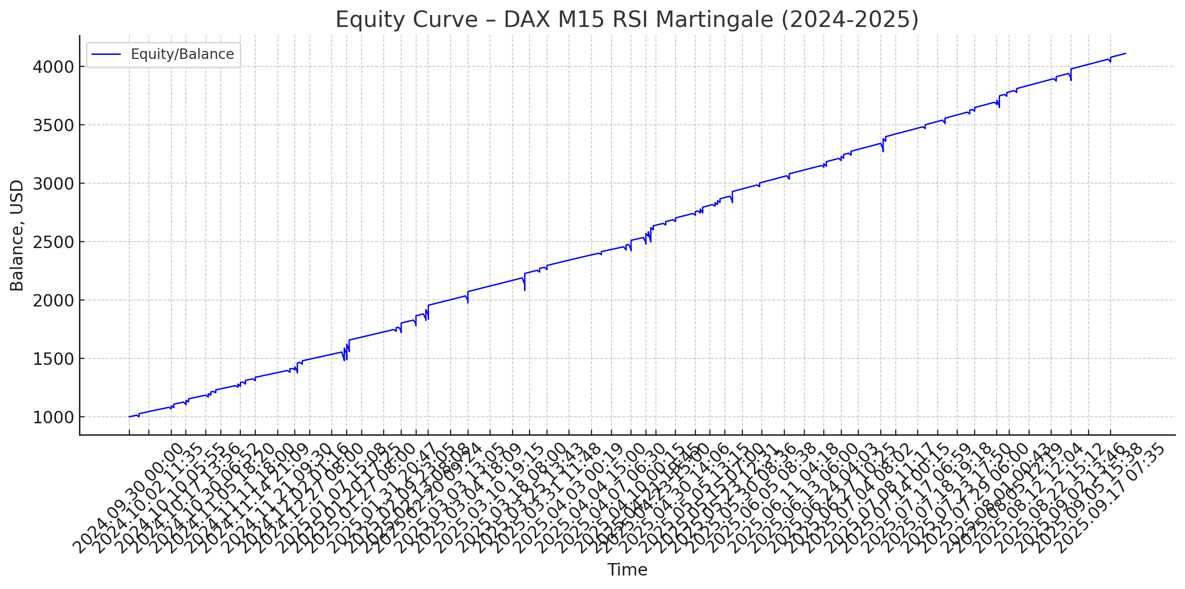 DAX M15 RSI 马丁格尔(2024-09 – 2025-09)摘要: