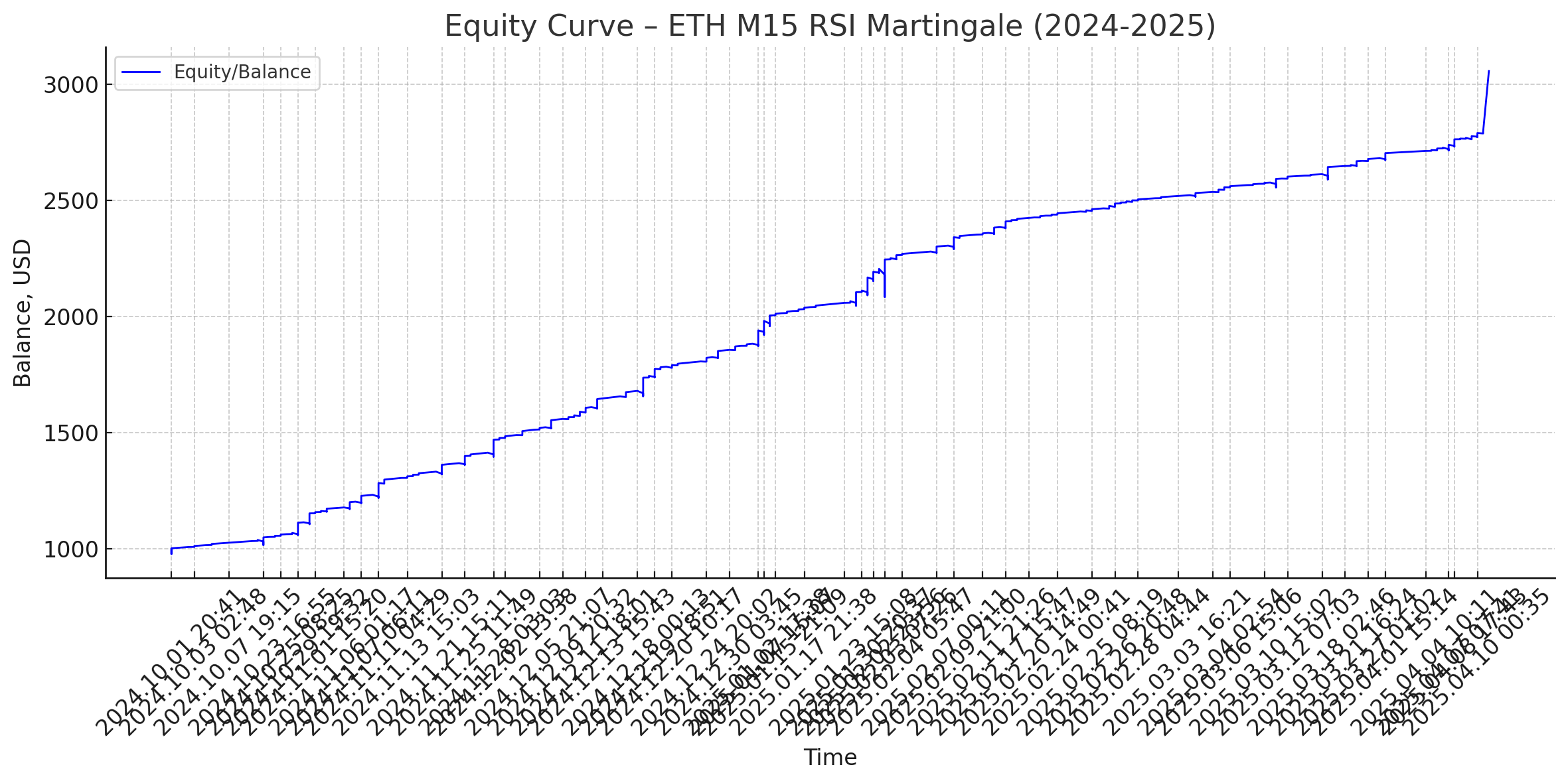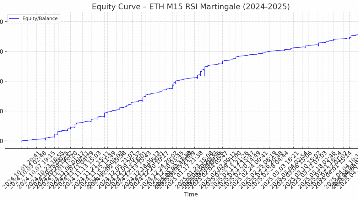 ETH M15 RSI 马丁格尔(2024-09 – 2025-09)摘要: