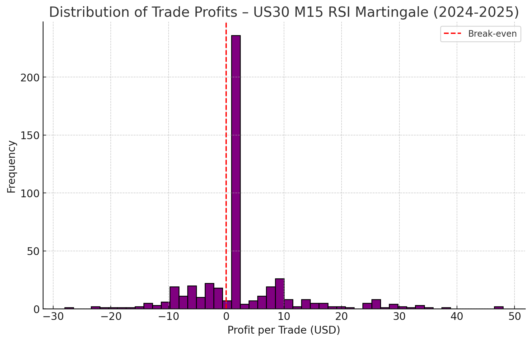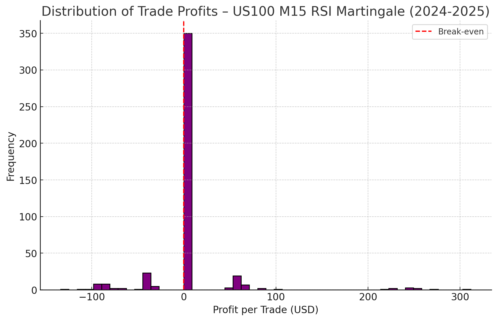 - 但马丁格尔特性削弱稳定性:亏损虽少见,却远大于多数盈利。