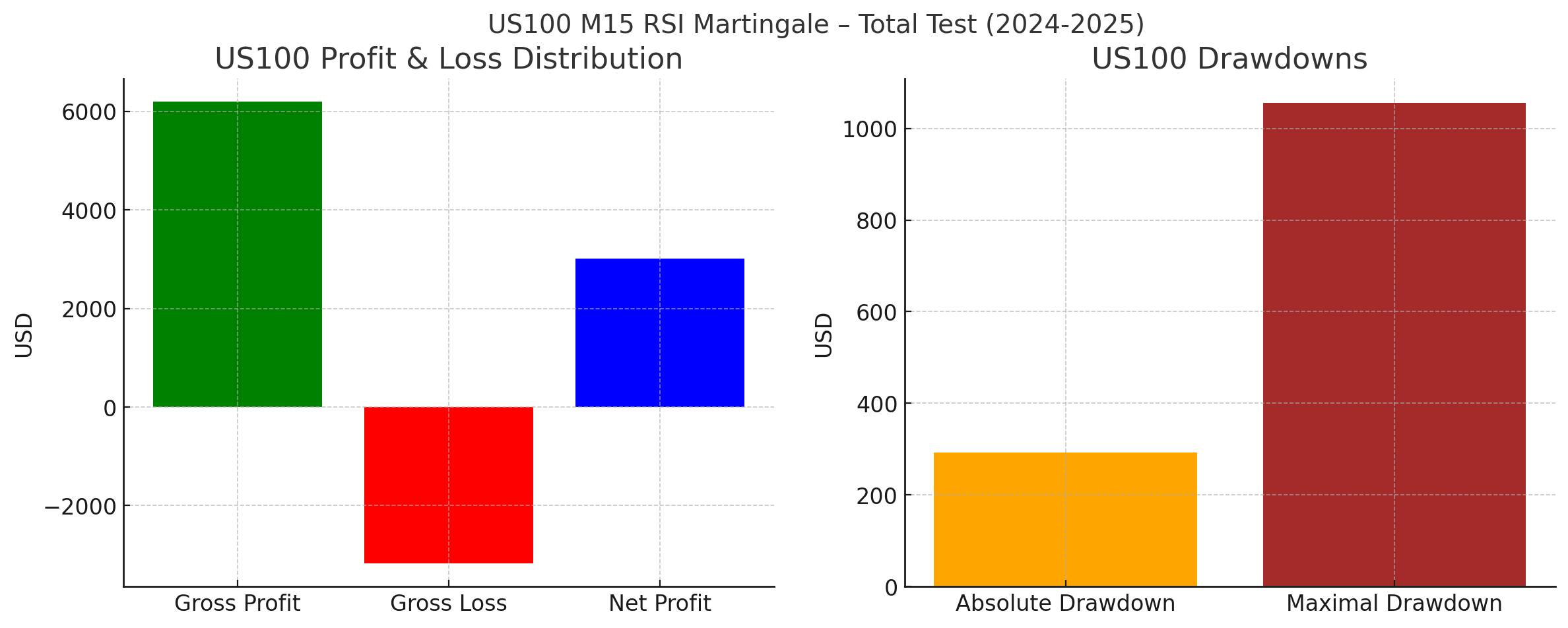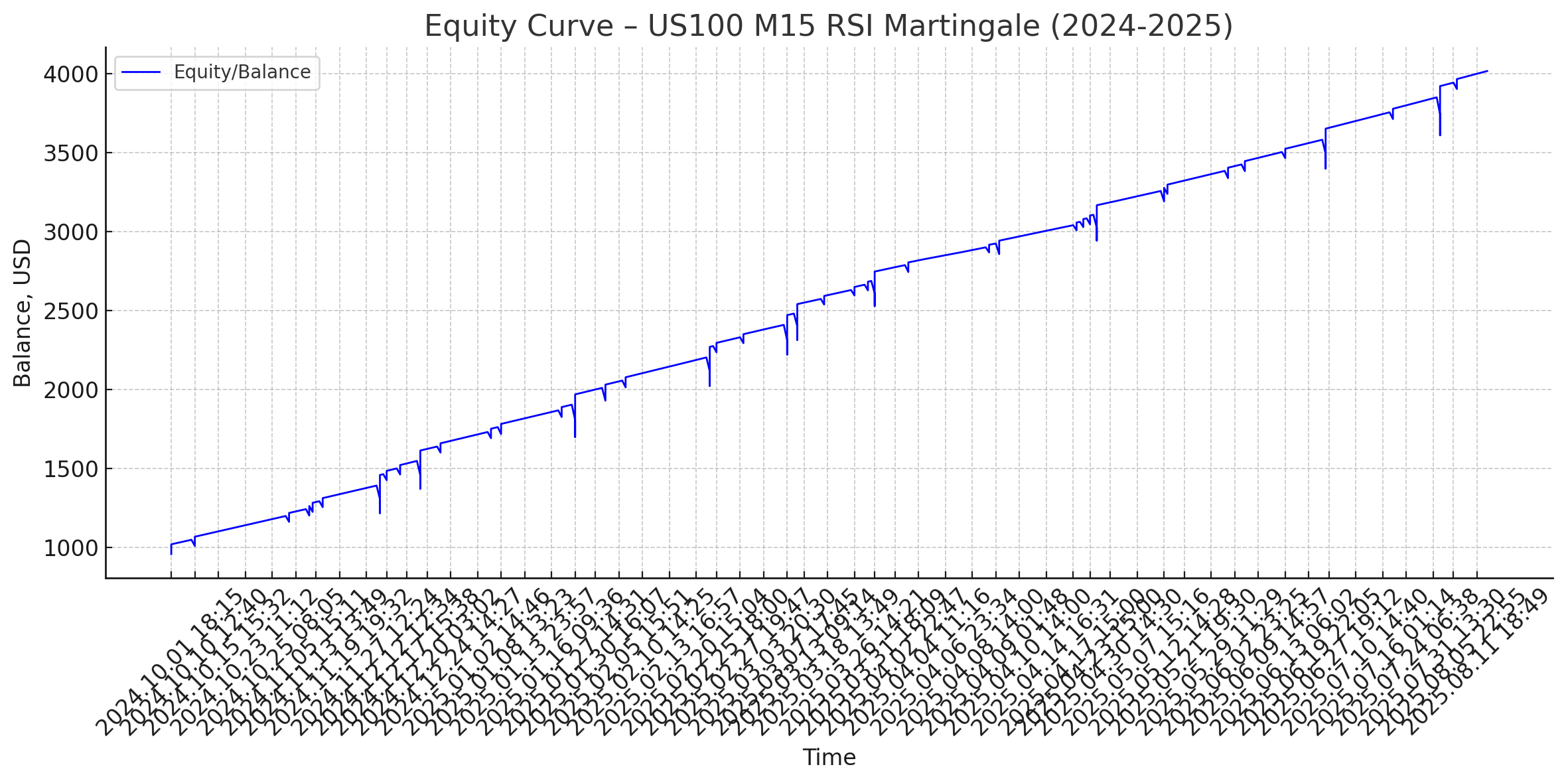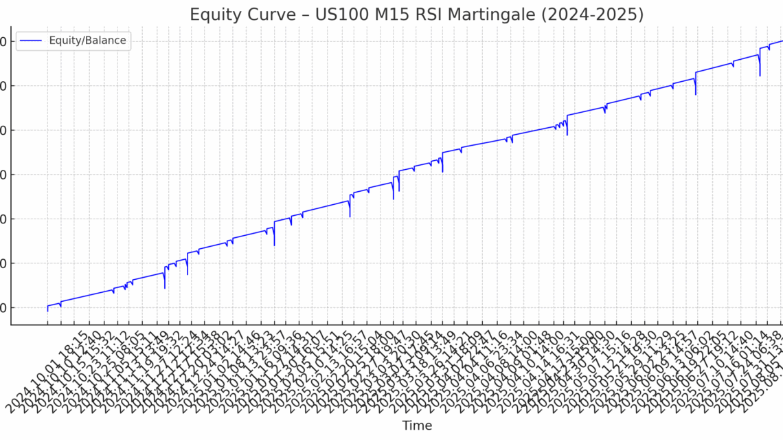 US100 M15 RSI 马丁格尔(2024-09 – 2025-09)摘要: