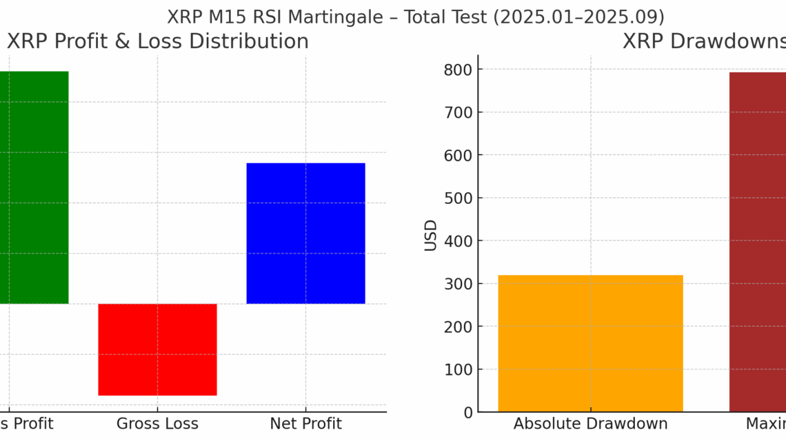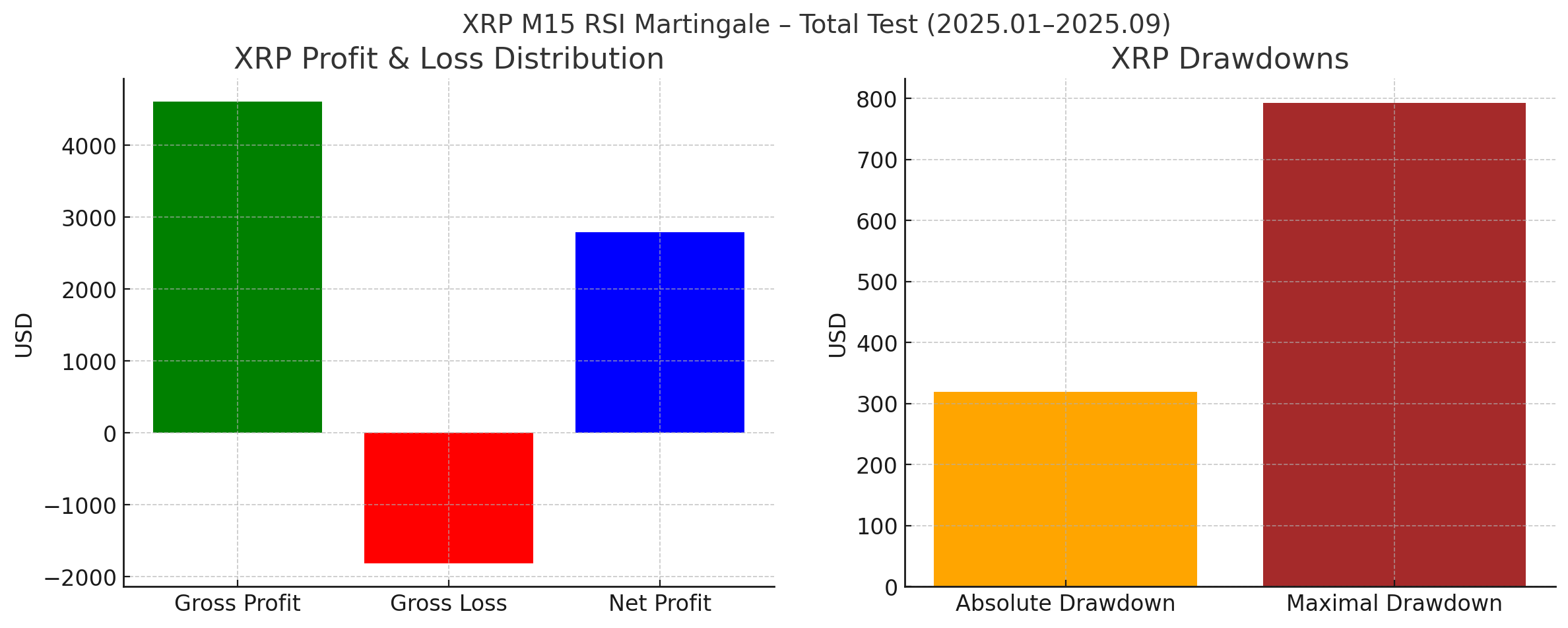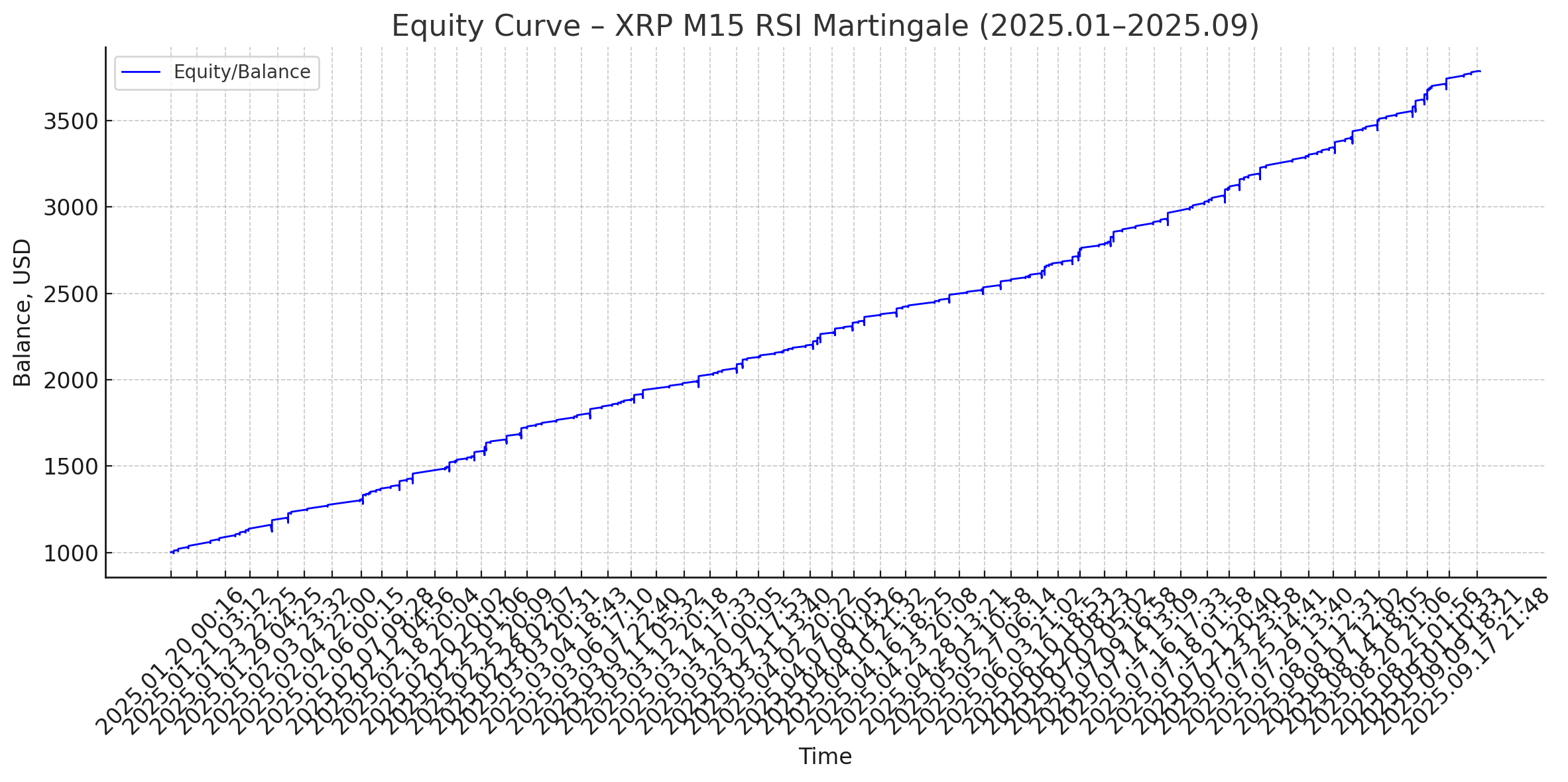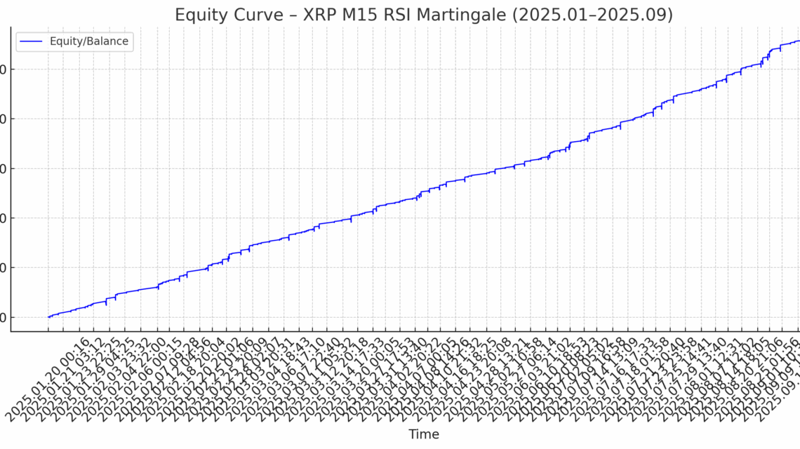 XRP M15 RSI 马丁格尔(2025-01 – 2025-09)摘要: