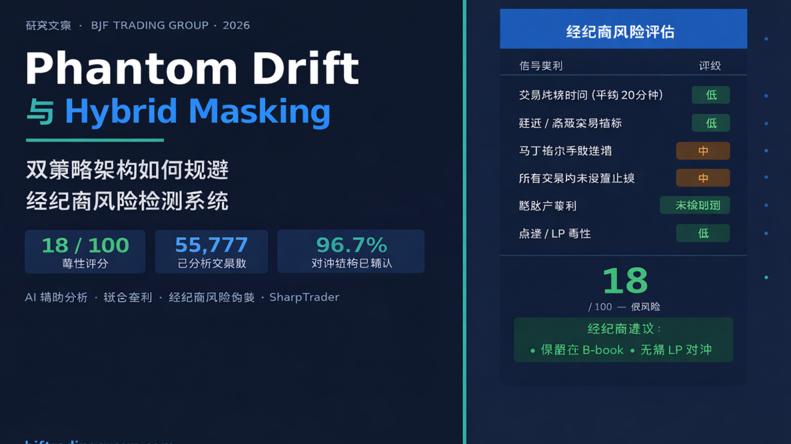摘要 随着零售外汇经纪商部署越来越先进的人工智能和机器学习插件来识别并限制盈利的算法交易账户,开发具备抗检测能力的套利策略已成为量化交易者面临的关键挑战。本文展示了 BJF Trading Group 开展的一项 AI 辅助分析研究成果。在该研究中,我们将经纪商级风险评分方法应用于一个真实账户(phantomdrift),该账户运行